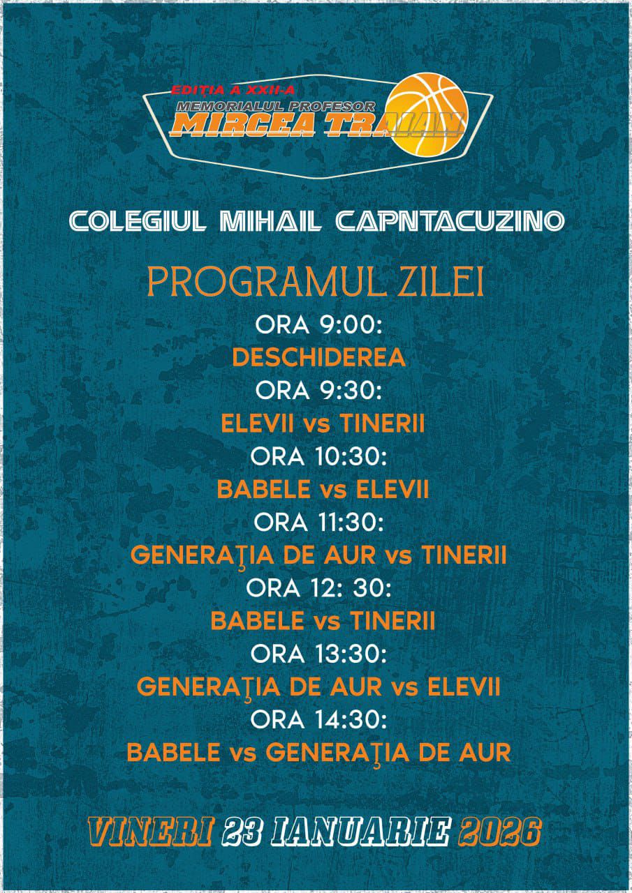 Vă invităm să luați parte la o zi specială dedicată memoriei profesorului cantacuzin, Mircea Traian, un eveniment care aduce împreună generații diferite, unite de pasiunea pentru baschet și fair-play.